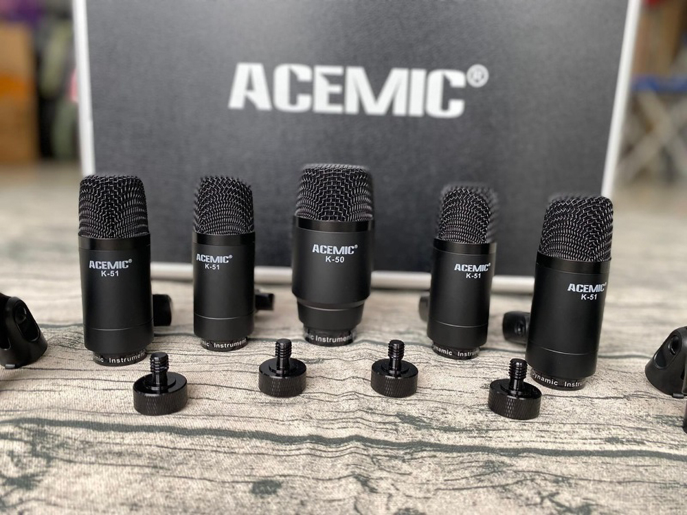 Complete 5-microphone pack for drums: kick, tom/snare x2, and hi-hat/cymbal x2