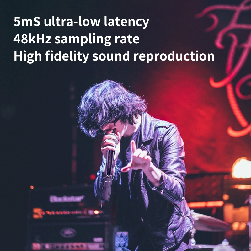 【High Quality Sound Transmission】This wireless microphone adapter adopts a 2.4GHz wireless frequency band, which features high signal stability, low interference, and short audio delay. Less than 5ms Latency, no lag or signal loss, 24-bit Audio Resolution with a Sampling Frequency of 48KHz.
