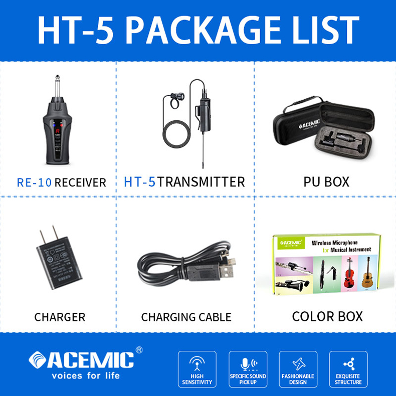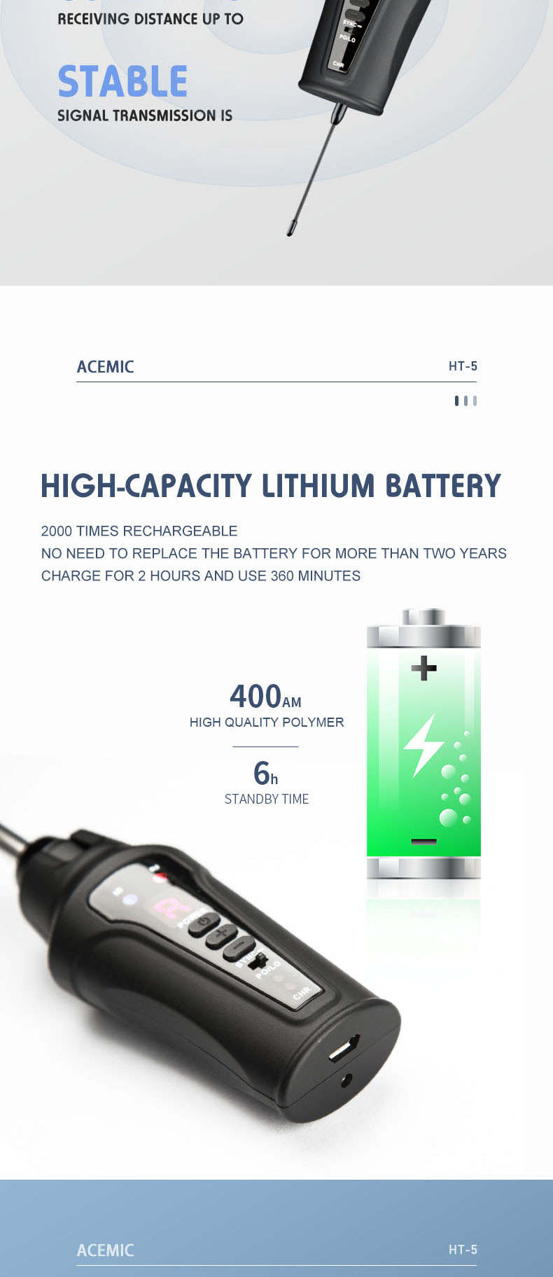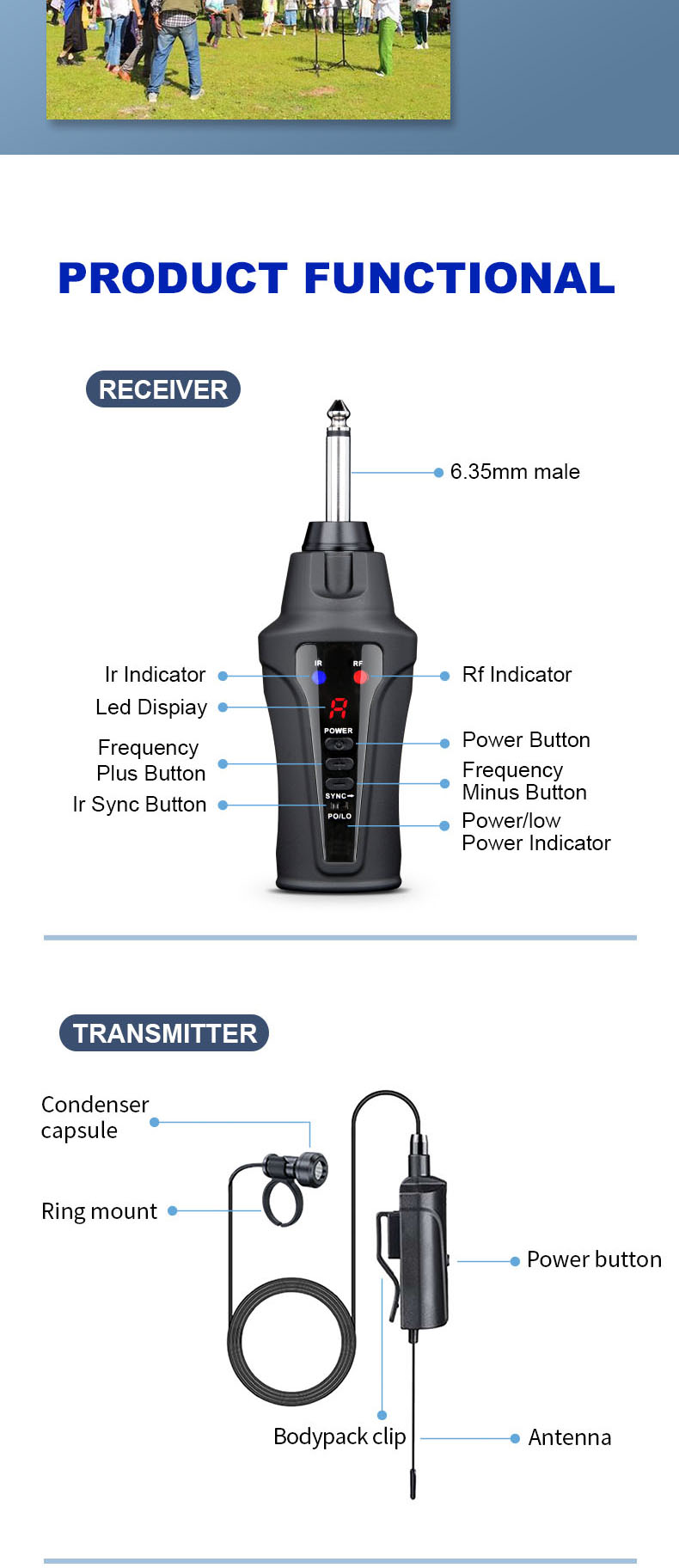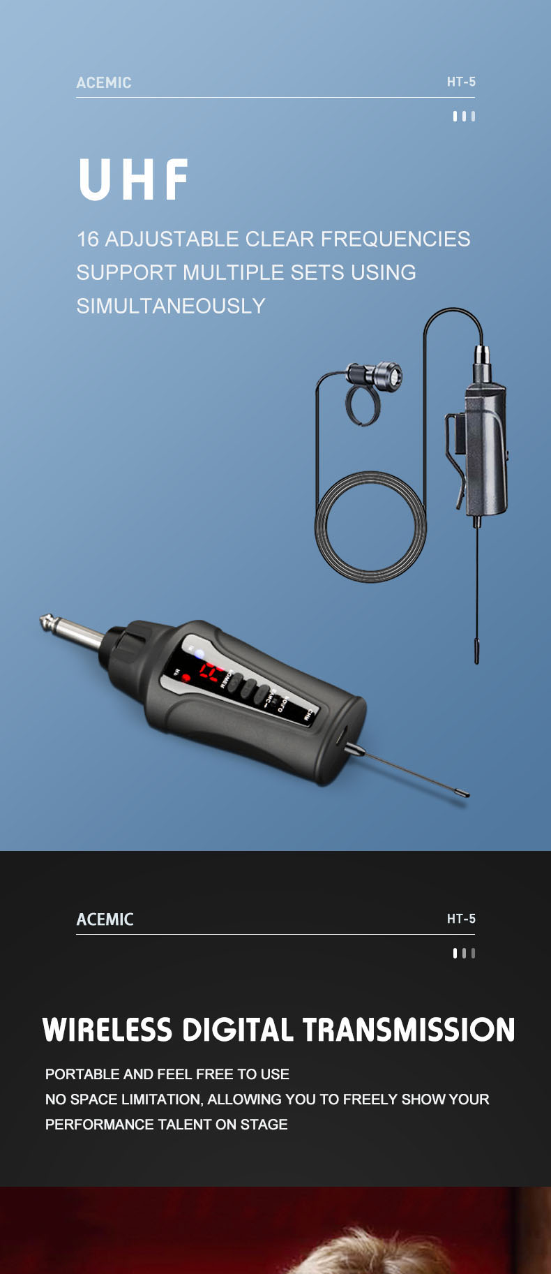 【Finger Ring Design】The wireless harmonica microphone adopts finger ring design,  with a small condenser mic propped up on the head of the ring. Hands free for your playing harmonica freely.