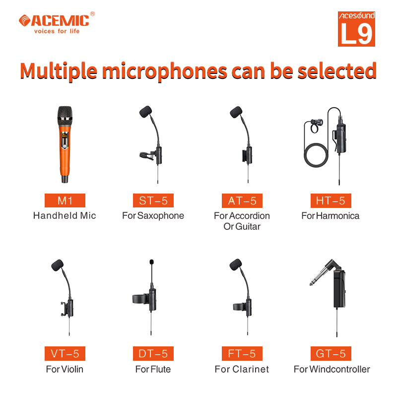 【First Choice for Band Outdoor Performance】The portable instrument speaker comes with selectable dual wireless instrument microphones for Saxophone, Violin, Accordion, Acoustic Guitar, Flute, Harmonica, Clarinet etc, good choice for singer, musician, whole band, guitarist, violinist outdoor instrument playing.