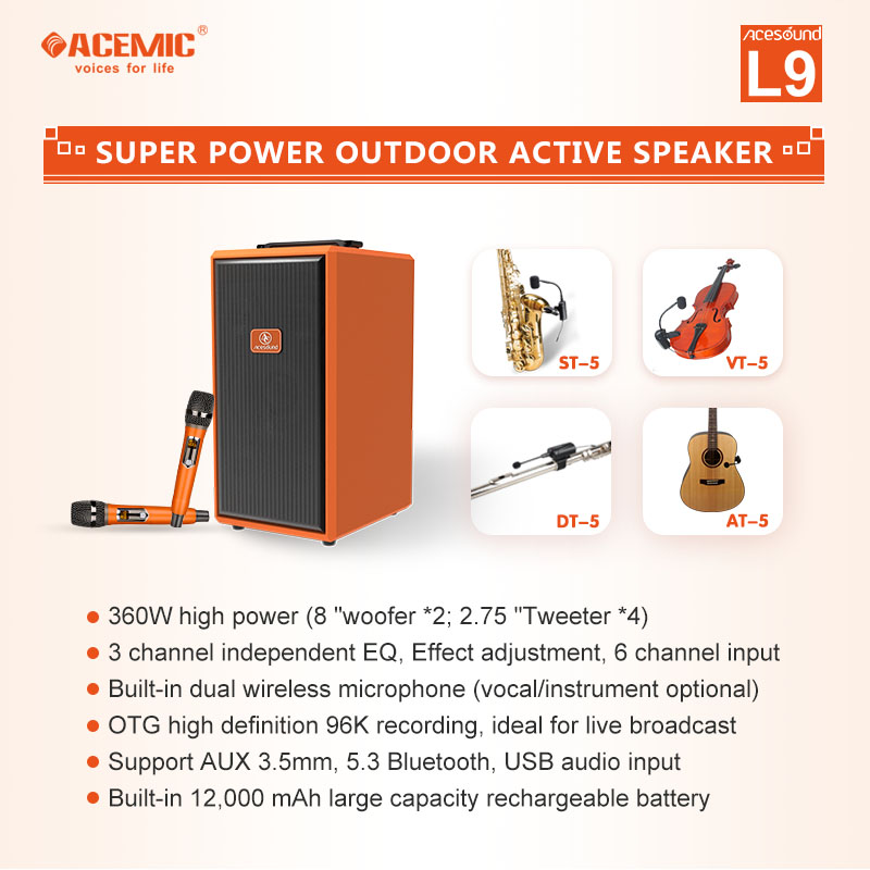 The instrument speaker that everyone has been looking for is here---L9  is designed with a wooden structure to give you better bass and clearer sound. Not just loud, but really powerful, whether you are at home or on outdoor, it will bring you unprecedented listening.
