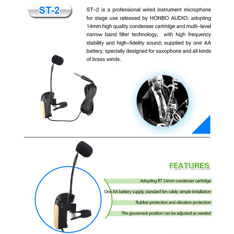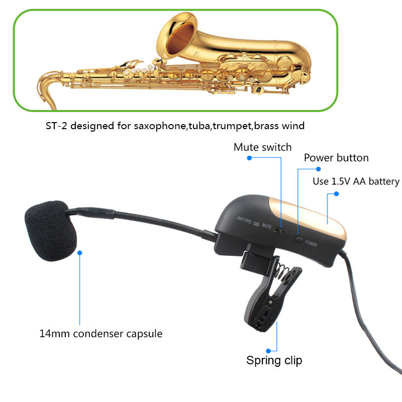 Elevate your saxophone performances with the ST-2 wired saxophone microphone, delivering professional-grade sound capture for every note.